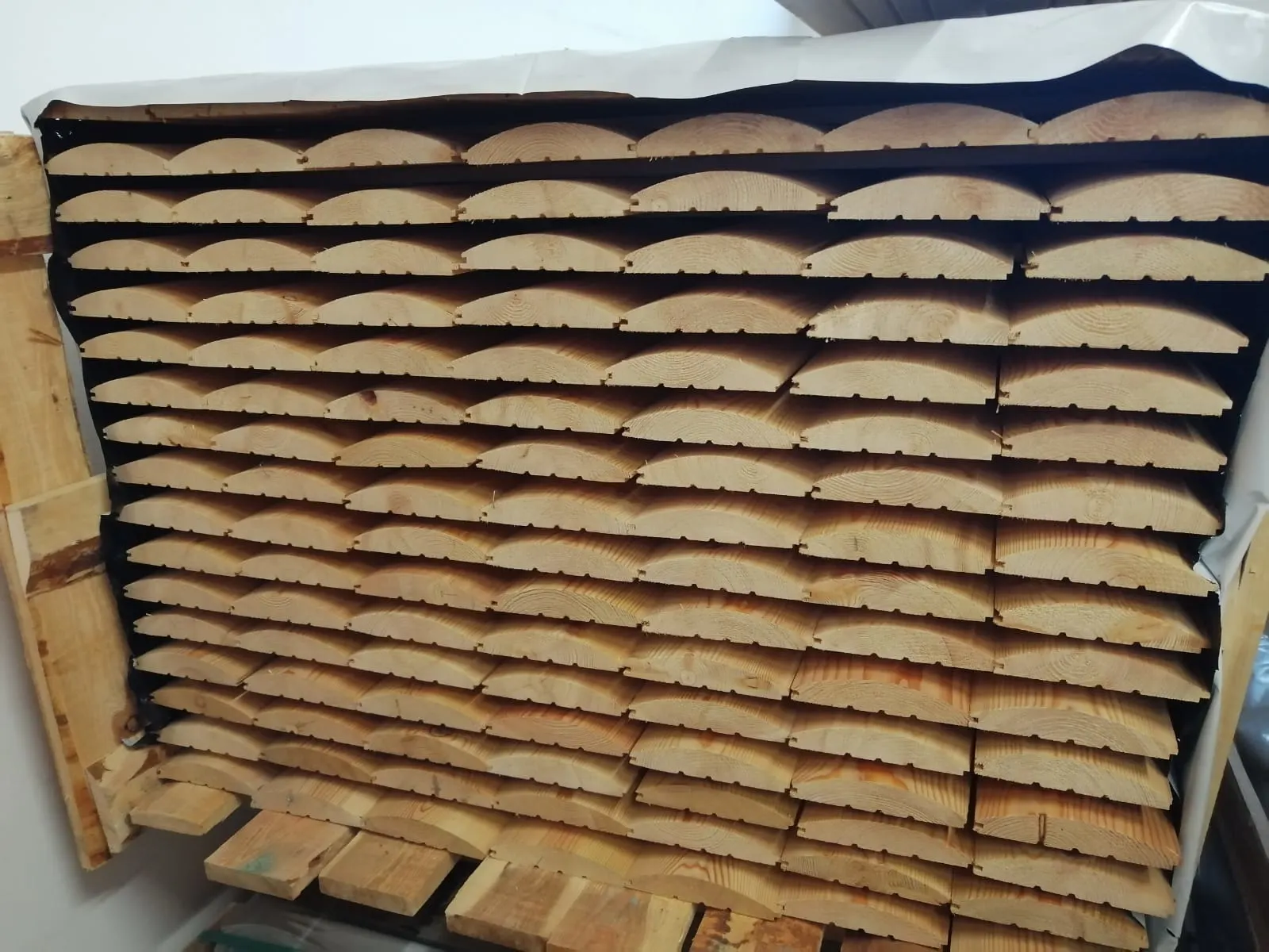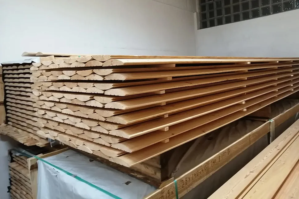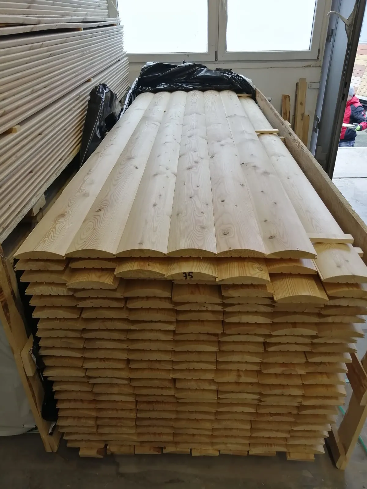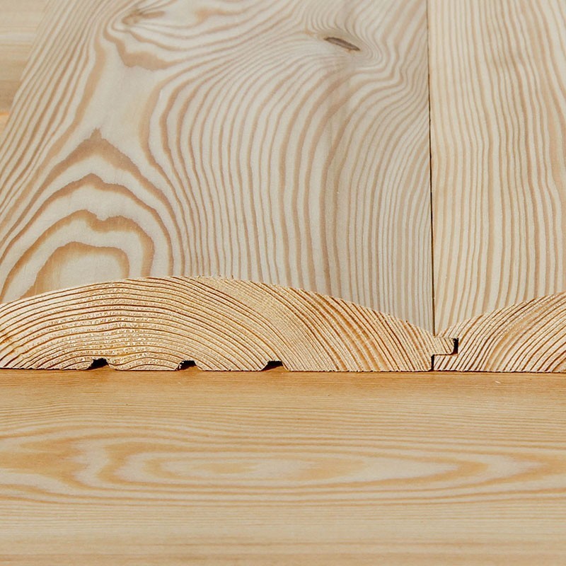 Dieses Verkleidungselement ist aufgrund seiner Eigenschaften und Konstruktionsmerkmale sehr beliebt. Als Material dient das Massivholz aus Lärche, das gut getrocknet ist. Eine solche Vorbearbeitung hilft, Risse und andere Verformungen zu vermeiden. Die Außenseite hat eine gewölbte Oberfläche und die Innenseite ist flach. Durch eine Nut-Feder-Verbindung wird ein dichtes Anliegen der Bretter zueinander erreicht, wodurch eine feste, ganzheitliche Konstruktion entsteht. Eine perfekt ebene Fläche sowie die Rillen an der Innenseite des Elements dienen als Belüftungskanäle.