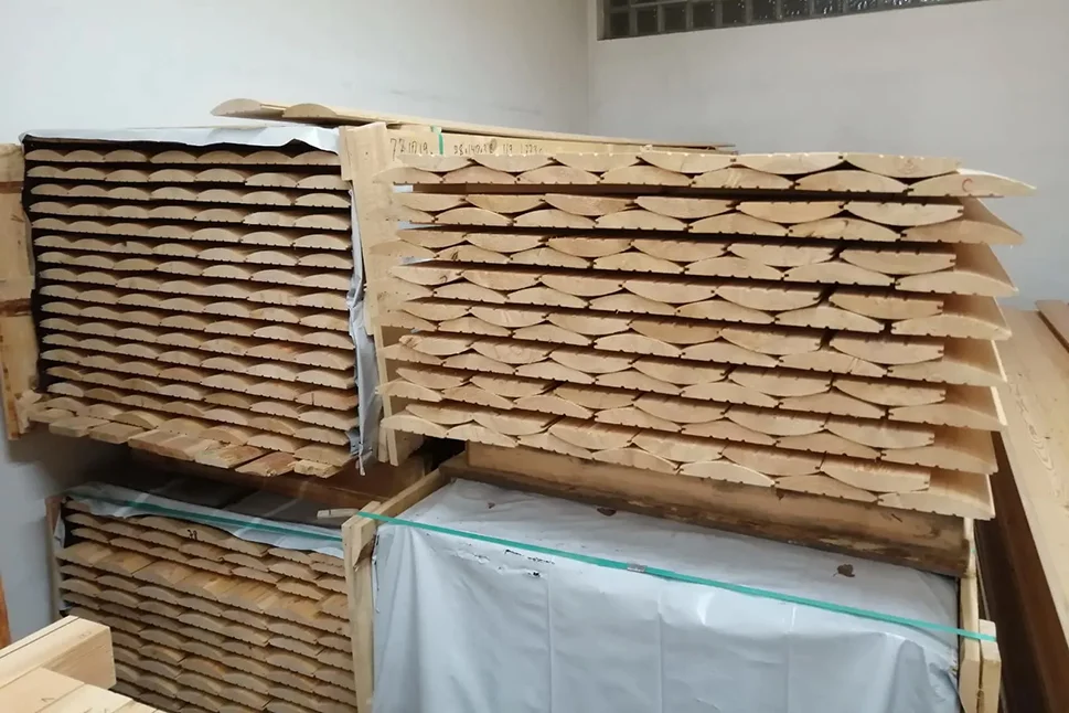 Die Blockhausprofile in A-Sortierung aus Sibirischer Lärche sind kammergetrocknet mit 14%(± 2%) Restfeuchte und allseitig glatt gehobelt.