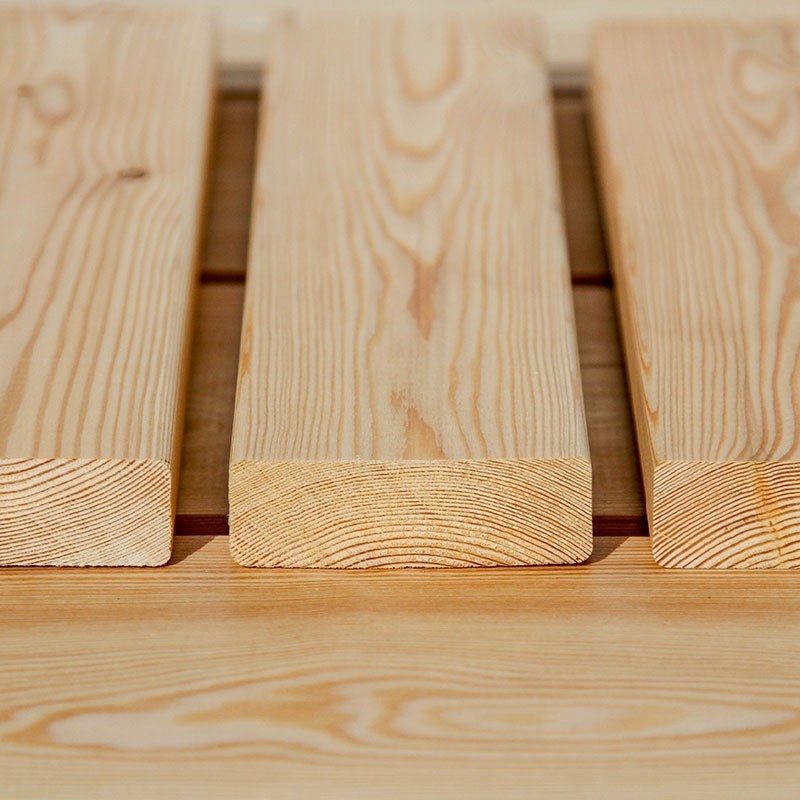 Die Glattkantbretter in E-Sortierung aus sibirischer Lärche sind kammergetrocknet mit 12%(± 2%) Restfeuchte und allseitig glatt gehobelt.
