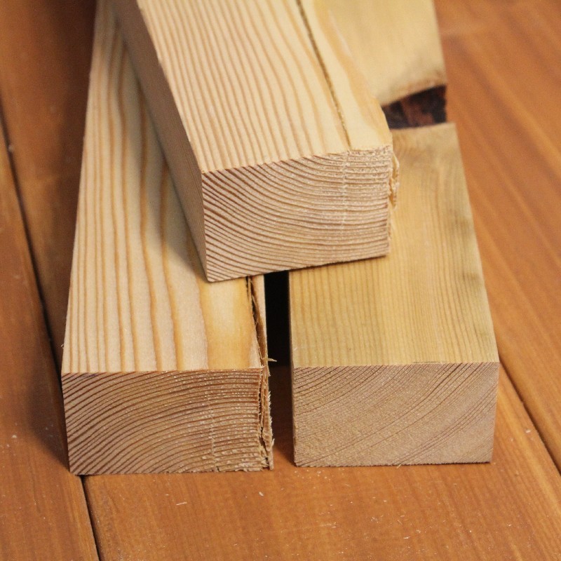 Die Kanthölzer in B-Sortierung aus sibirischer Lärche sind kammergetrocknet mit 12%(± 2%) Restfeuchte und allseitig glatt gehobelt.