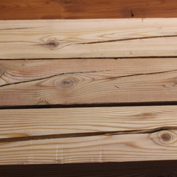 Die Kanthölzer in B-Sortierung aus sibirischer Lärche sind kammergetrocknet mit 18%(± 2%) Restfeuchte und allseitig glatt gehobelt.