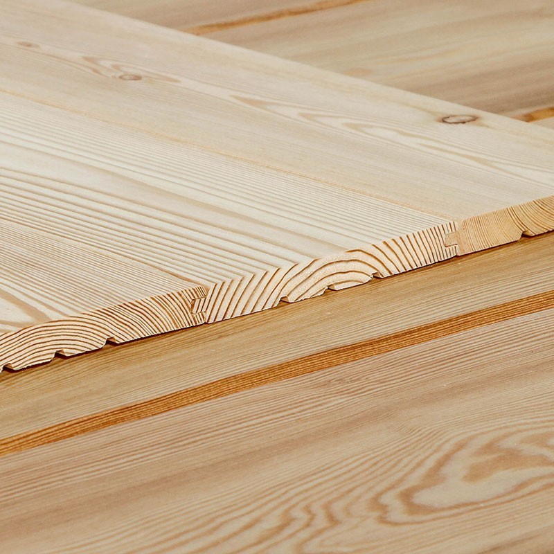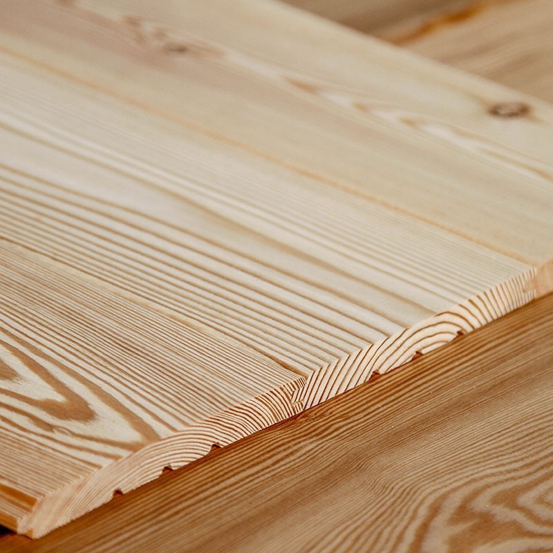 Das Profilholz in E-Sortierung aus sibirischer Lärche mit strukturierter Oberfläche sind kammergetrocknet mit 12%(± 2%) Restfeuchte.