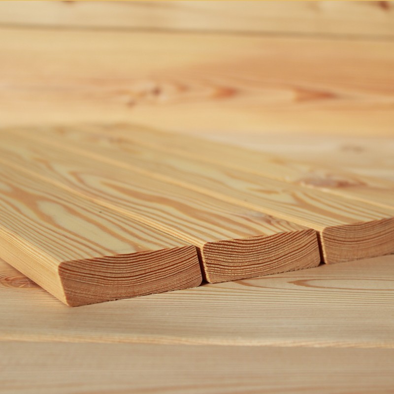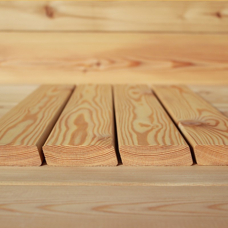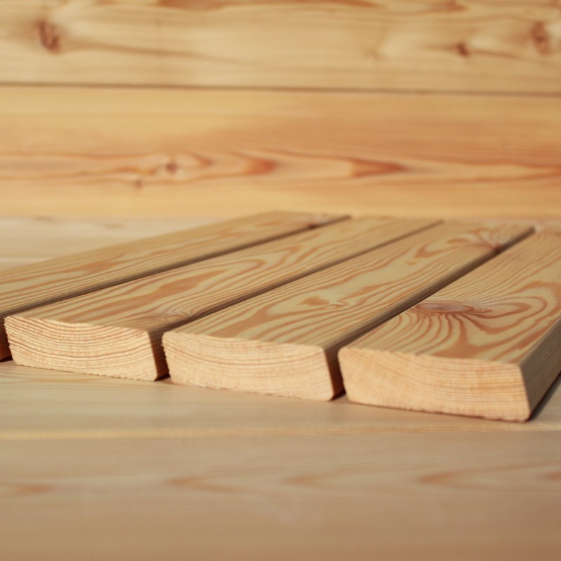 Die Rhombusleisten in A-Sortierung aus sibirischer Lärche sind kammergetrocknet mit 14%(± 2%) Restfeuchte und allseitig glatt gehobelt.