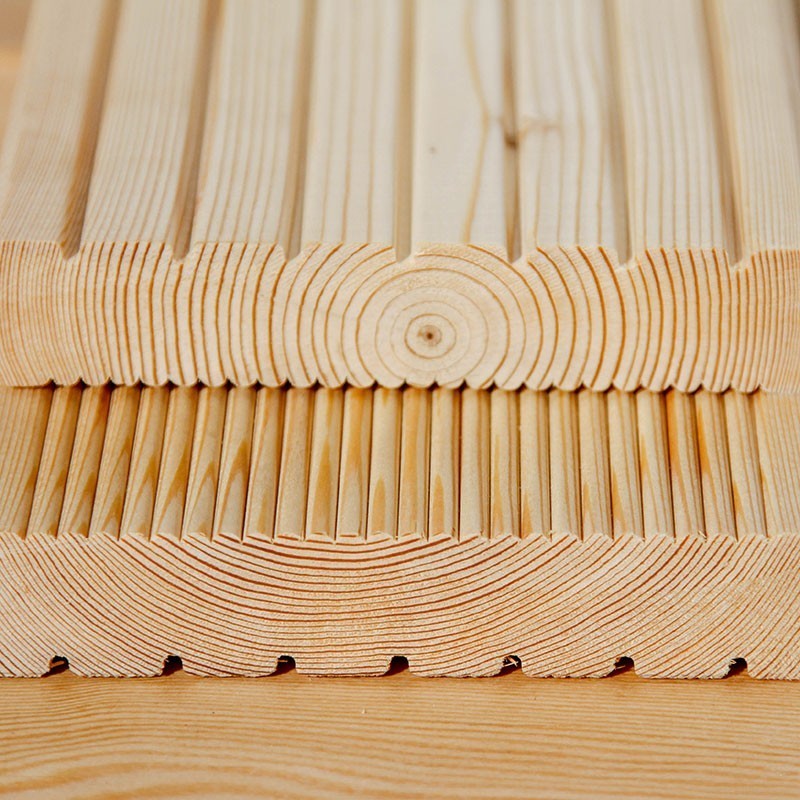 Die Oberflächenbehandlung von Hobelware ist von Holzart zu Holzart unterschiedlich. Robuste Holzarten wie die Sibirische Lärche kommen im Außenbereich auch ohne Oberflächenbehandlung aus. Weniger robuste Holzarten wie die Fichte benötigen jedoch eine qualitativ hochwertige Oberflächenbehandlung. Nicht unwesentlich ist auch, dass das Lärchenholz spezielle Substanzen enthält - Phytonzide, die antiseptische Eigenschaften haben. Aus diesem Grund wird das Mikroklima im mit Lärche ausgestatteten Haus höchstgesund sein - es wurde nachgewiesen, dass Phytonzide das Wohlbefinden des Menschen positiv beeinflussen, den Blutdruck normalisieren, die Immunität stärken und keine Allergien auslösen.